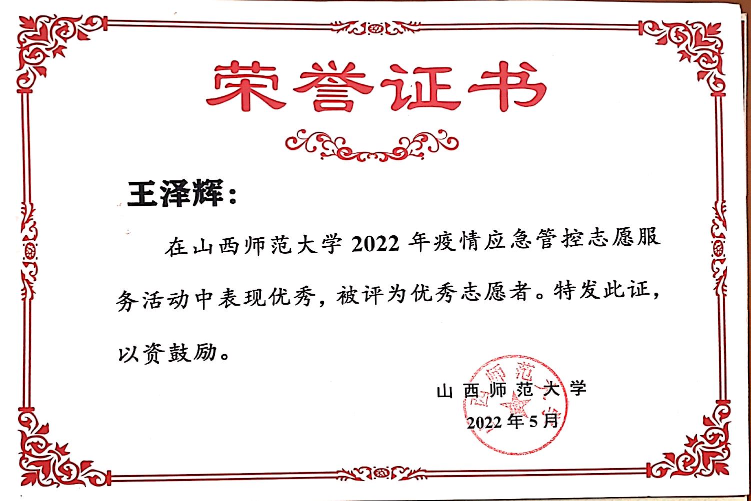 2022学年疫情应急管控优秀志愿者