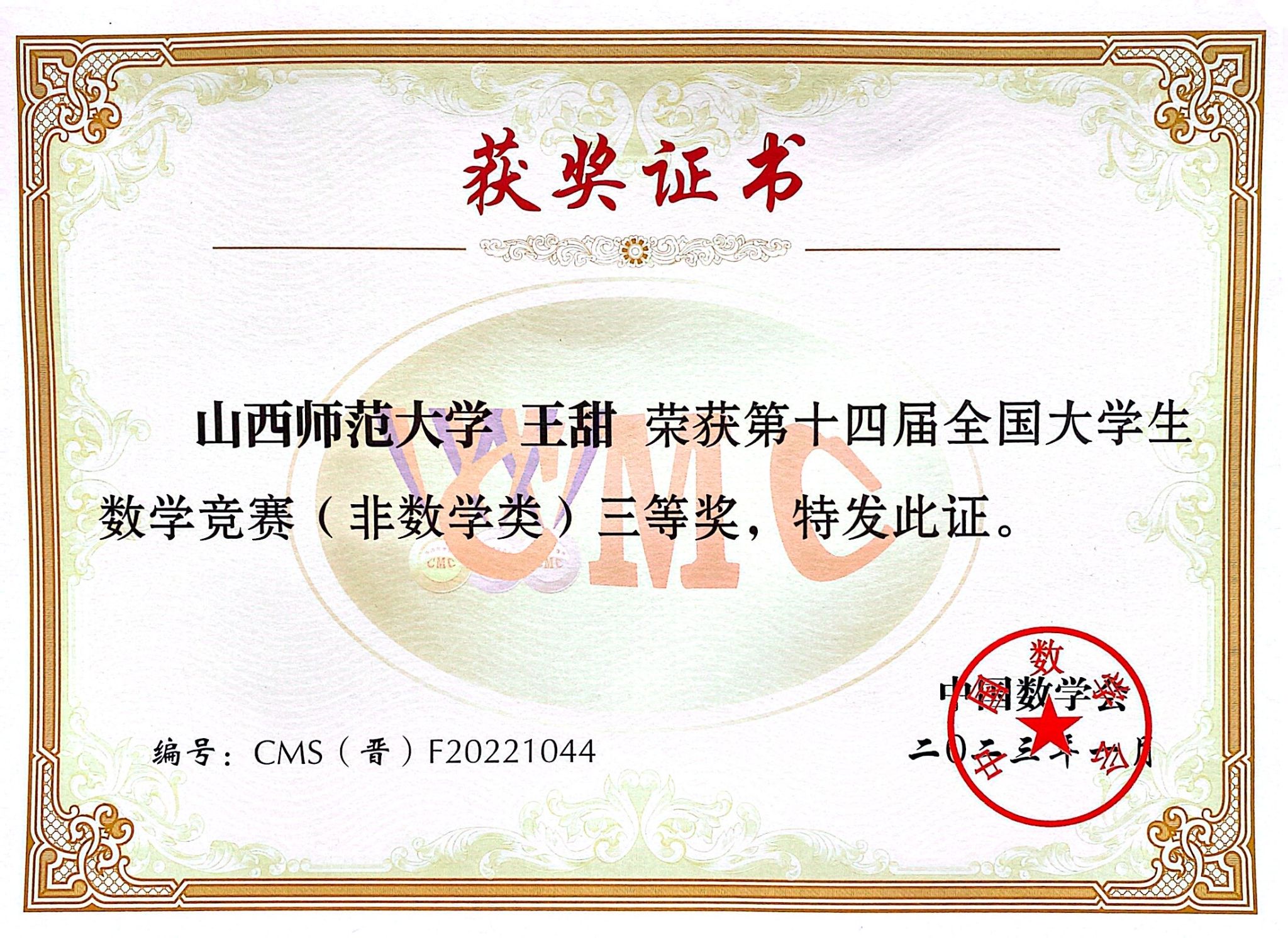 2022.12第十四届全国大学生数学竞赛(非数学类)省级三等奖