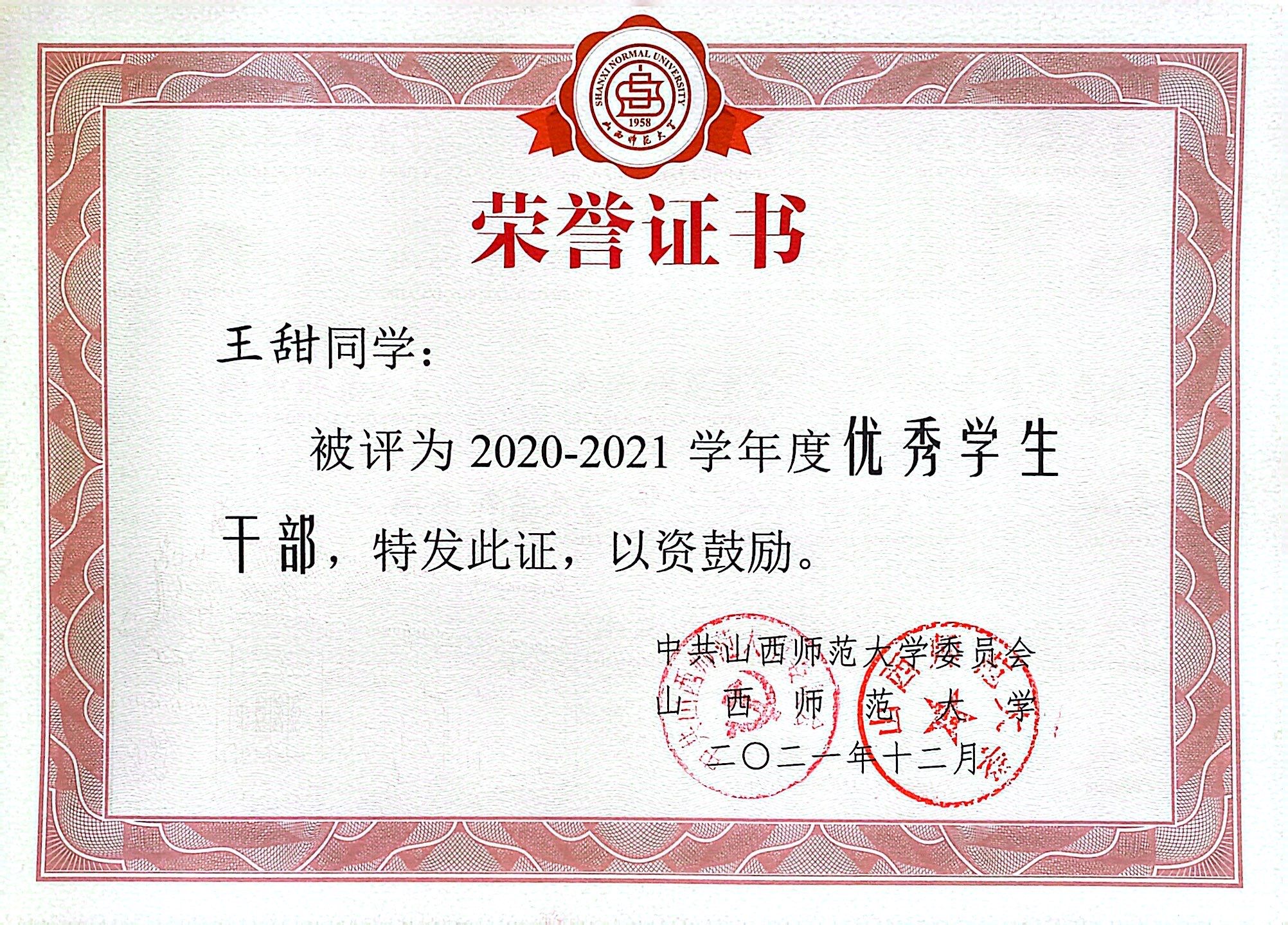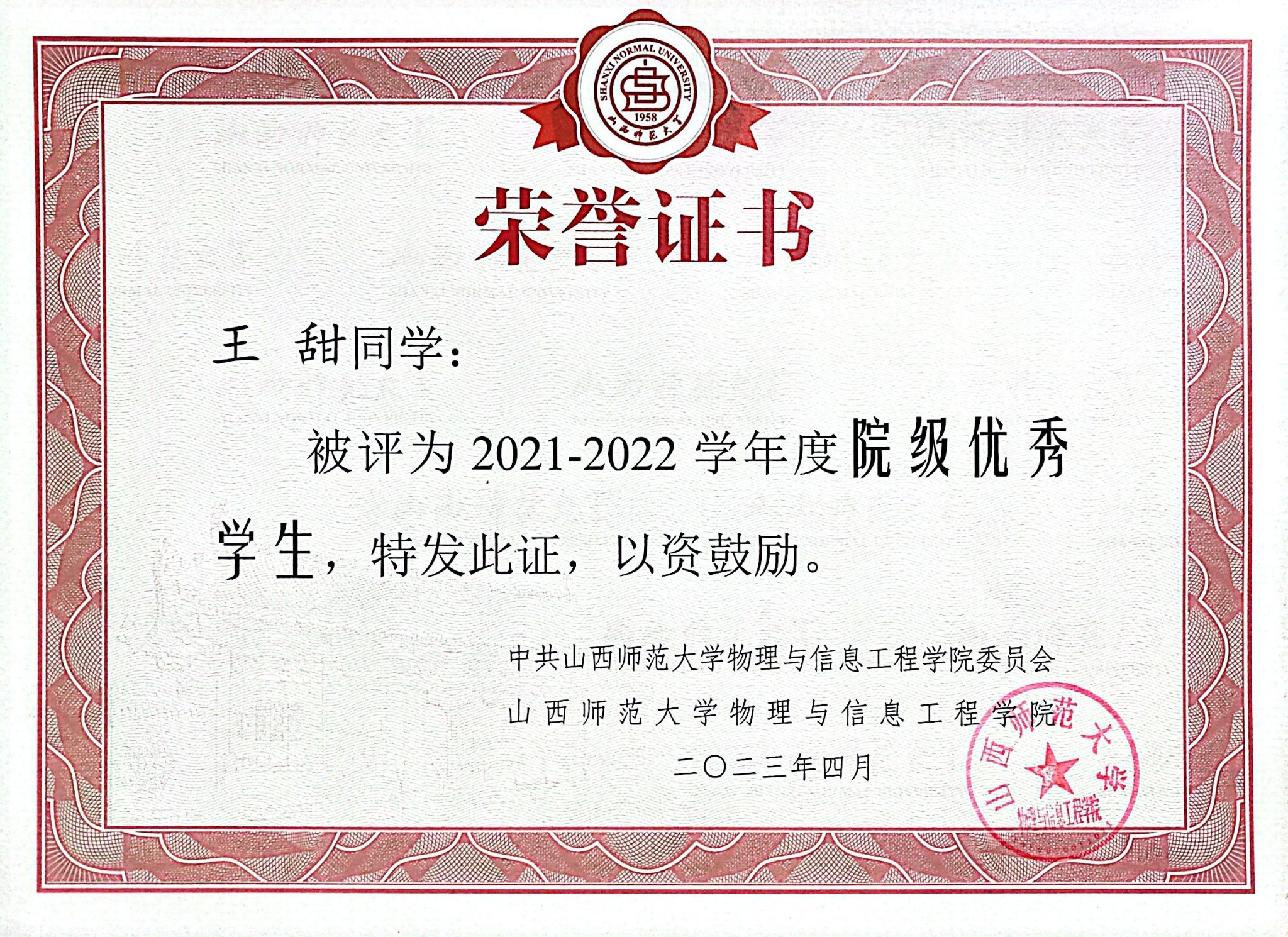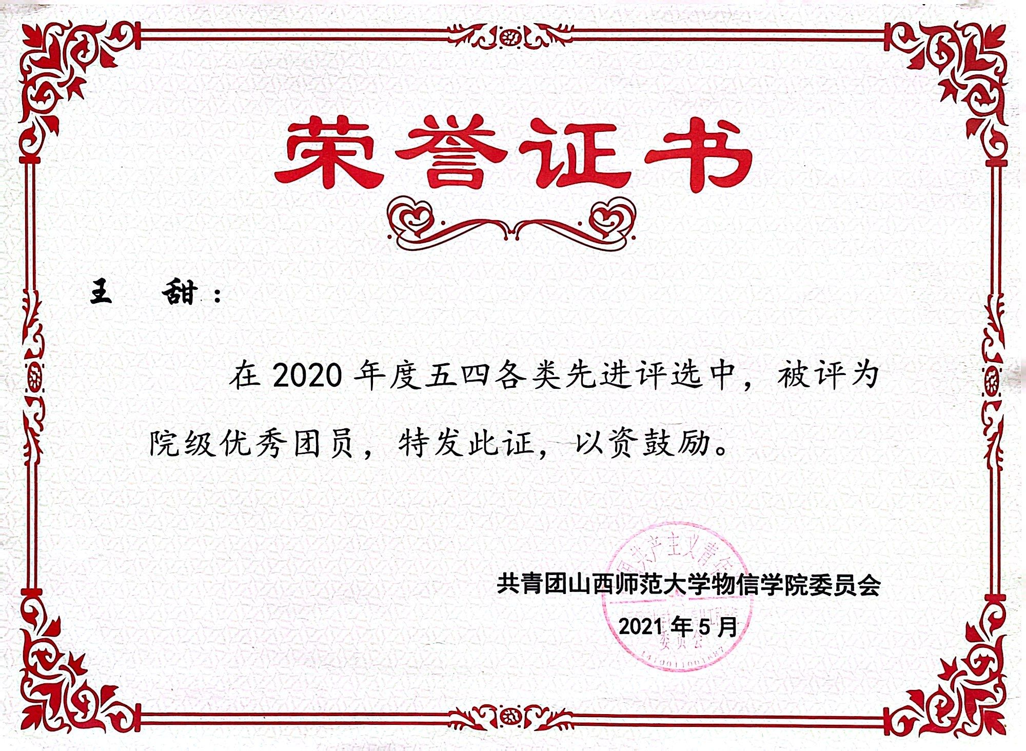 王甜,山西师范大学云顶Casino 2020级物理学专业学生,保研至北京科技大学。