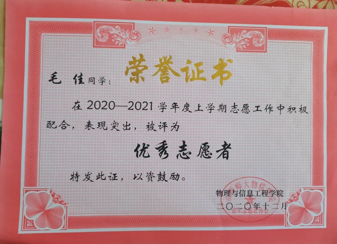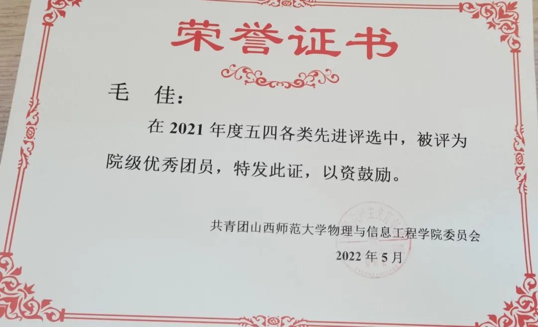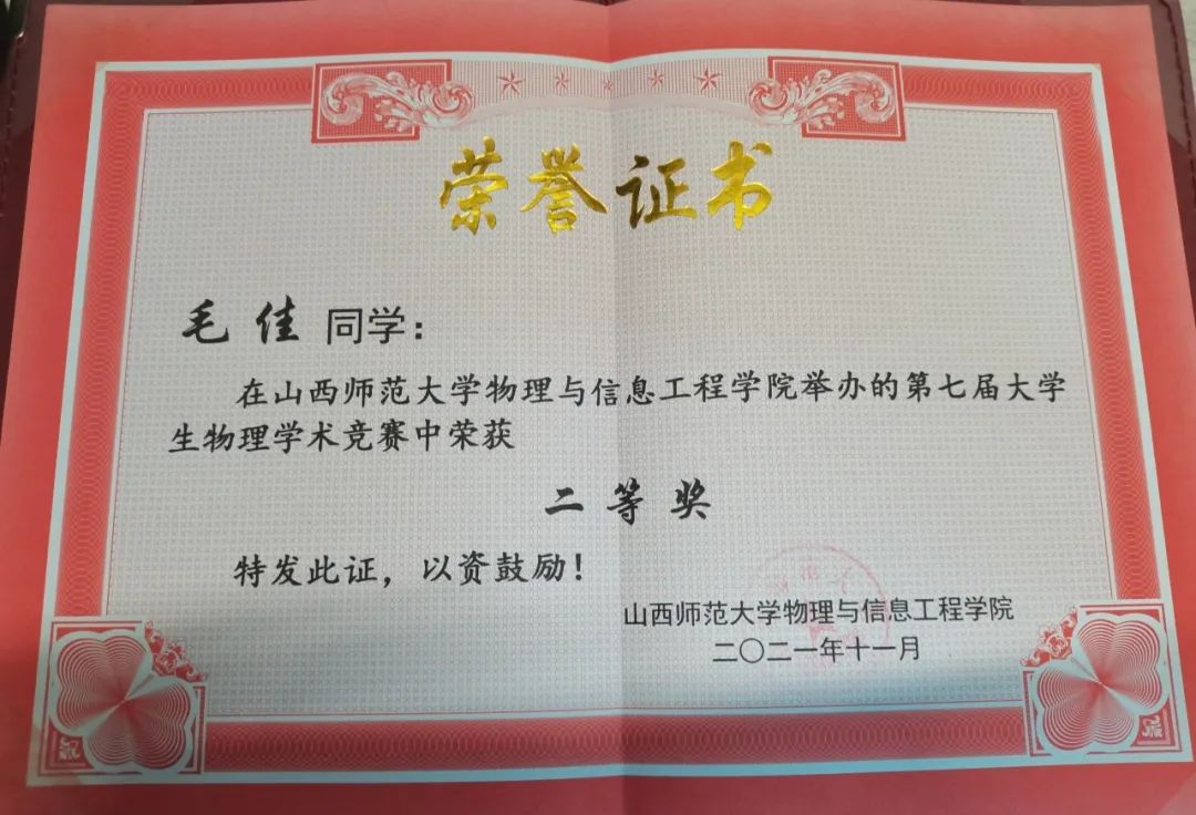 毛佳,山西师范大学云顶Casino 2020级物理学专业学生,2001班副班长,已与临汾三中签约,现于襄汾二中一校区实习。