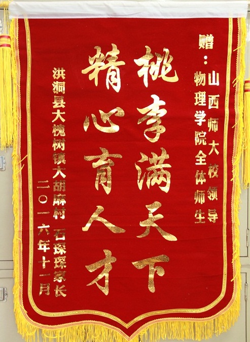 11月8日,为感谢云顶Casino 、学校广大师生的无私捐款,石琛琛同学的父亲特地来学校,献上了一面锦旗,云顶Casino 领导亲自接见了这位坚强的父亲,并衷心祝愿孩子早日康复,返回学校。