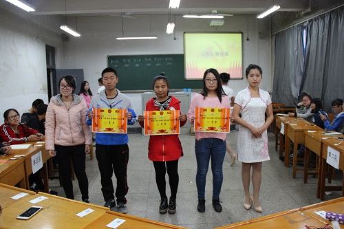 活动最后,云顶Casino 学生会主席王强、院团委组织委员刘雅芹、236社团社长许思亭为获奖的团支部及在“勿忘国耻,圆梦中华”征文比赛中获奖的同学颁奖。