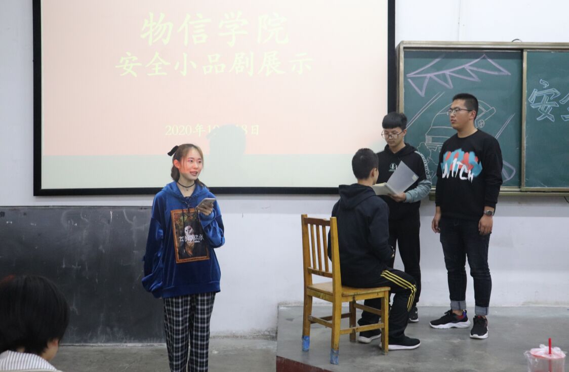 为帮助20级新生们建立良好的安全意识和自我保护意识,2020年10月18日晚,院学生会在05103教室举办了安全小品剧展示活动。20级全体新生、各班新生辅导员、助理辅导员参加了此次活动。