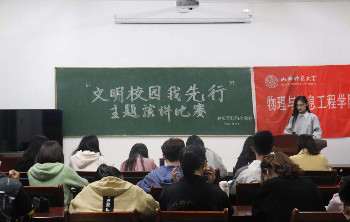 为了学习宣传贯彻党的十九届五中全会精神,号召同学们携手共创文明校园,争做新时代雷锋传人,践行社会主义核心价值观,2020年10月30日,院学生会于四号楼二层多功能会议室举办了“文明校园我先行”演讲比赛。