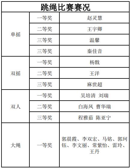 “小雪至,冬始俏”,能抵御严寒的除了厚厚的衣物还有强健的体魄。此次跳绳比赛,不仅强健了选手们的体魄,还营造了和谐校园的良好氛围,培养了学生的团队意识,充分展示了各班级良好的精神面貌和自强进取的拼搏精神。(文/2002班 江冉 摄/2002班 赵雅婷)