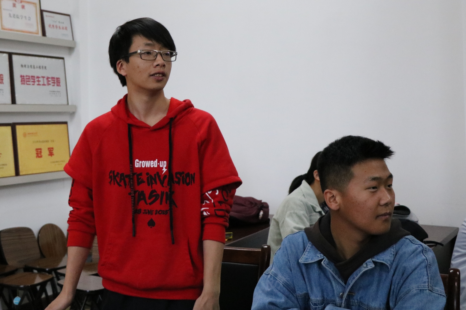 2019年3月26日晚6:10,云顶Casino 团委组织开展的“团支书上团课”第二课——“‘改革创新,奋发有为’大讨论”,在四号楼二层多功能会议室开讲。团课由1706团支书赵福民主讲,大一、大二各班班长和团支书参加。