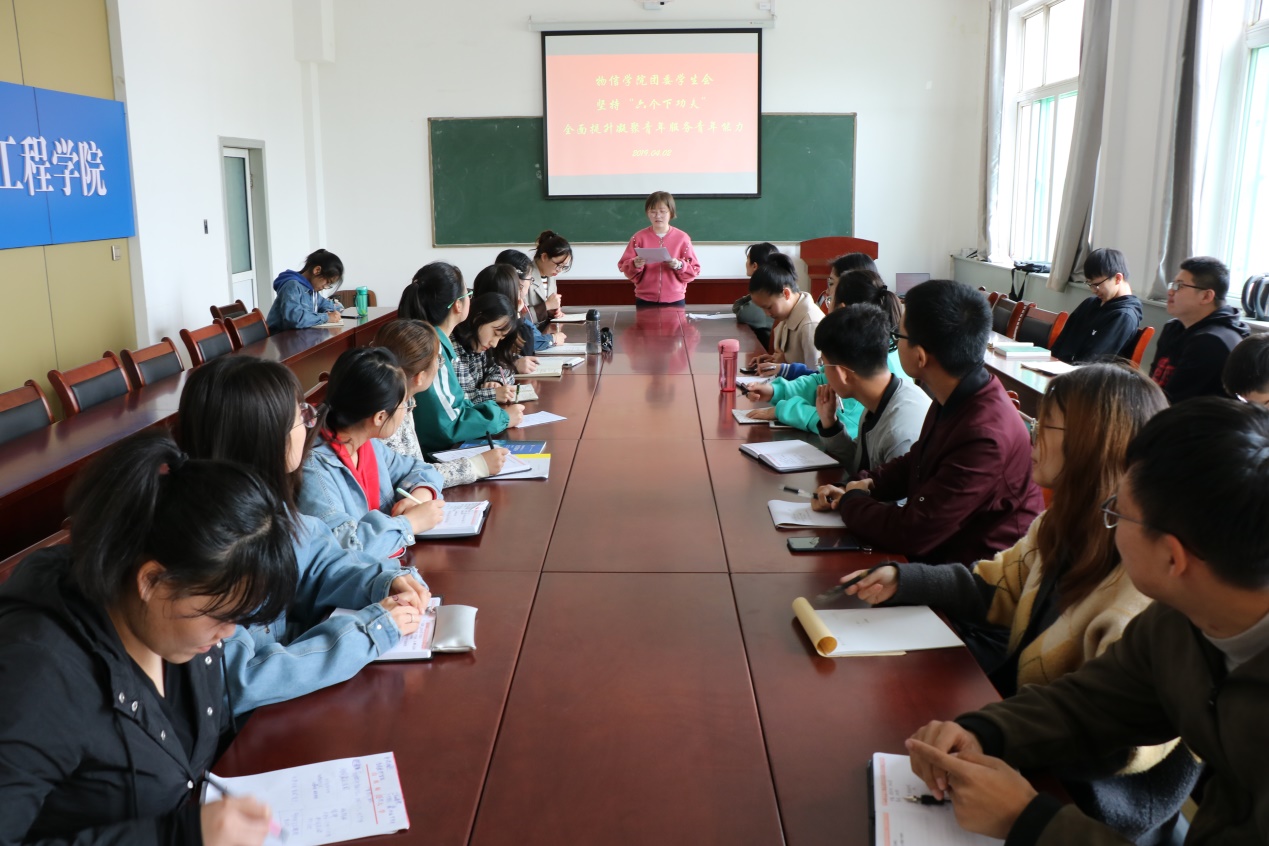 2019年4月2日中午,云顶Casino 团委学生会在四号楼二层多功能会议室召开坚持“六个下功夫”全面提升凝聚青年服务青年能力专题学习会议,院团委学生会主要学生干部参加了会议,专题学习会议由院学生会办公室部长李旭莹带领学习。