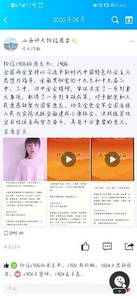 6月9日,1801班首先拉开了传递接龙活动的序幕。通过院团委QQ空间隔空喊话兄弟班级1802班,倡导同学们要敢于担当、敢闯敢试,勇敢担负起新时代赋予的重任,在实现伟大中国梦的道路上,同心同向、砥砺前行,奋力书写无悔于青春的华丽篇章。随后各个班级逐一通过@大接龙的方式把同学们对两会的关注、对祖国的祝福、对未来的期待、对同学的寄语进行了推送。