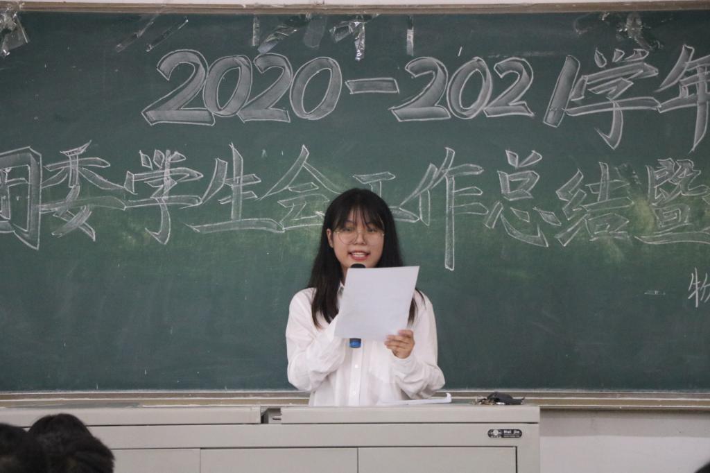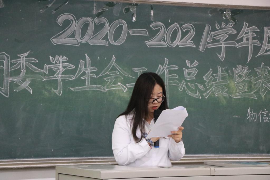 会上,各部门代表依次进行发言,结合ppt汇报了本部门一学年来的工作情况、取得的成绩、存在的不足以及对未来的期望。院学生会主席团成员尤天奇对学生会一学年的工作开展情况进行了总结,指出工作中存在的问题,分析了原因并给出建议。院团委(学生)副书记李欣越宣读了2020—2021学年度院团委学生会优秀志愿者名单。院团委负责人马丽娜老师为优秀志愿者颁奖并做了总结讲话。她向获得表彰的优秀志愿者表示了热烈的祝贺,向勤奋学习、扎实工作的全体团委学生会工作人员表示衷心的感谢。同时她也对全体成员提出了希望和要求:一是要不忘初心,勤于学习,更好地提升自己,提升为同学们服务的能力;二是要集思广益、团结合作,把每一项工作做精作细,打造精品活动;三是要严于律己,争做表率,维护好学团干部的良好形象。