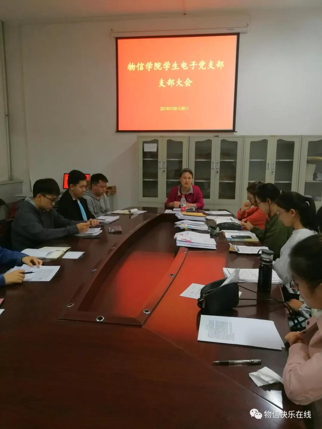 2018年9月26日晚7:50,云顶Casino 学生电子党支部在四号楼一层会议室召开学生电子党支部支部大会,全体党员、预备党员共计13人参加了会议,会议由支部书记崔艳主持。