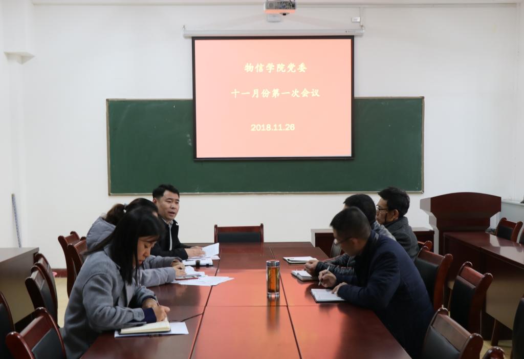 2018年11月26日下午5:00,院党委在四号楼二层多功能会议室召开十一月份第一次会议。全体党委委员参加了会议,会议由院党委书记陈向波主持。