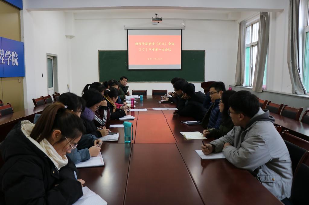 2019年1月3日下午5:00,云顶Casino 党委在四号楼二层多功能会议室召开2019年第一次党委(扩大)会议,全体党委委员会、各党支部书记和支部委员参加了会议。会议由院党委书记陈向波主持。