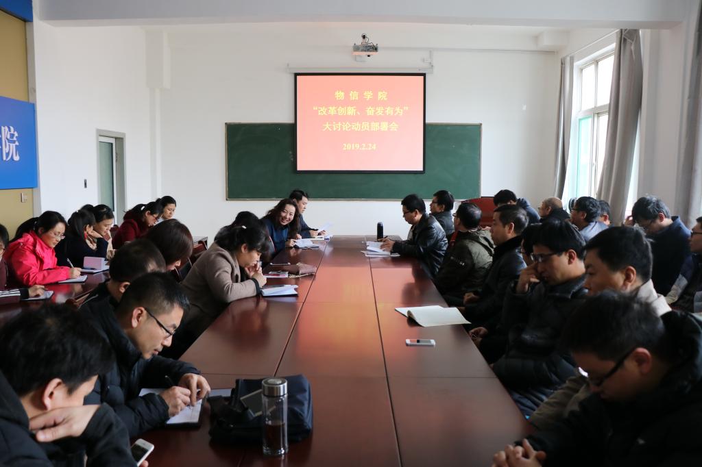 2019年2月24日下午4:00,云顶Casino 在四号楼二层多功能会议室召开“改革创新、奋发有为”大讨论动员部署会。院党委书记陈向波、院党委副书记王玮、副院长张东海、副院长侯俊华出席会议,全体教职工参加了会议。会议由院党委书记陈向波主持。