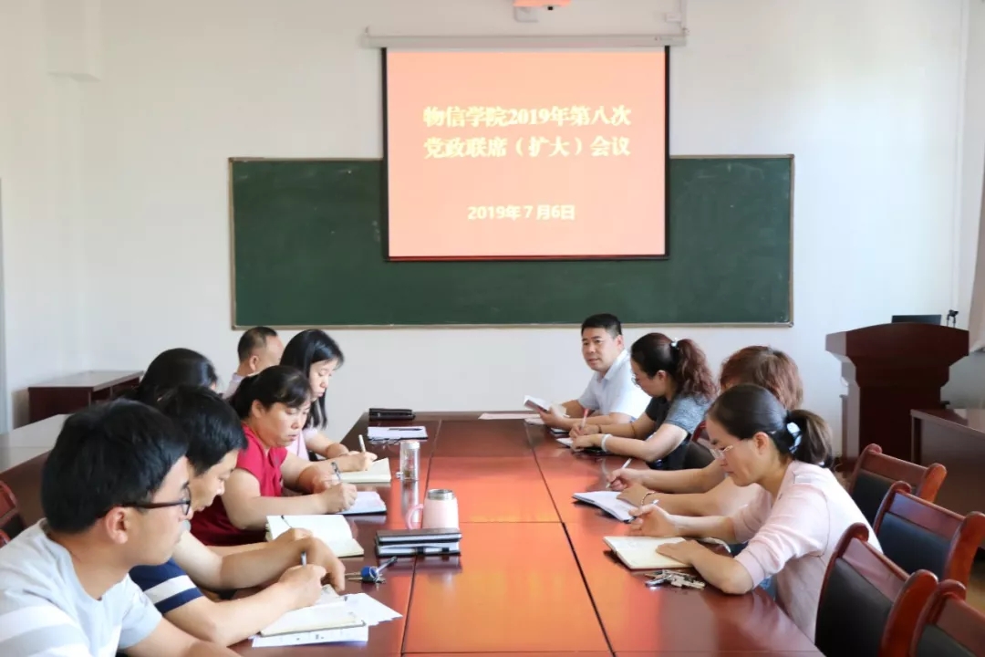 2019年7月6日,云顶Casino 2019年第八次党政联席(扩大)会议在四号楼二层多功能会议室召开。全体院领导和中层以上干部参加了会议。会议由院党委书记陈向波主持。