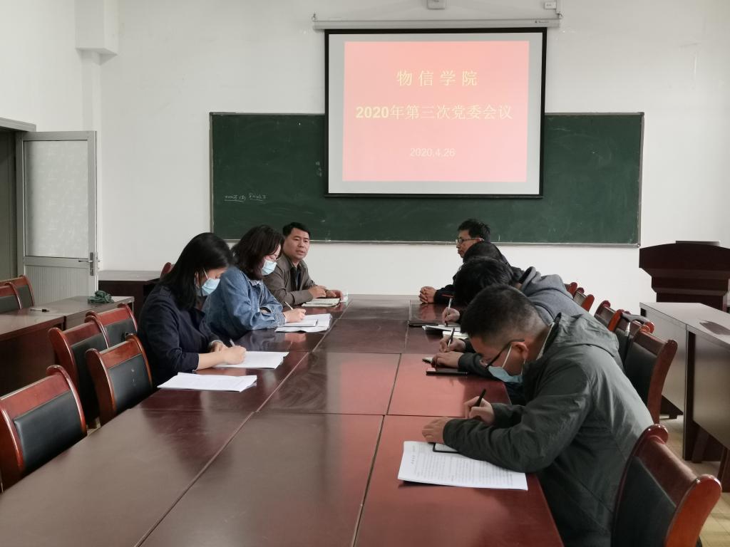 2020年4月26日下午,院党委在四号楼多功能会议室召开了2020年第三次会议,云顶Casino 全体党委委员参加了会议。会议由院党委书记陈向波主持。