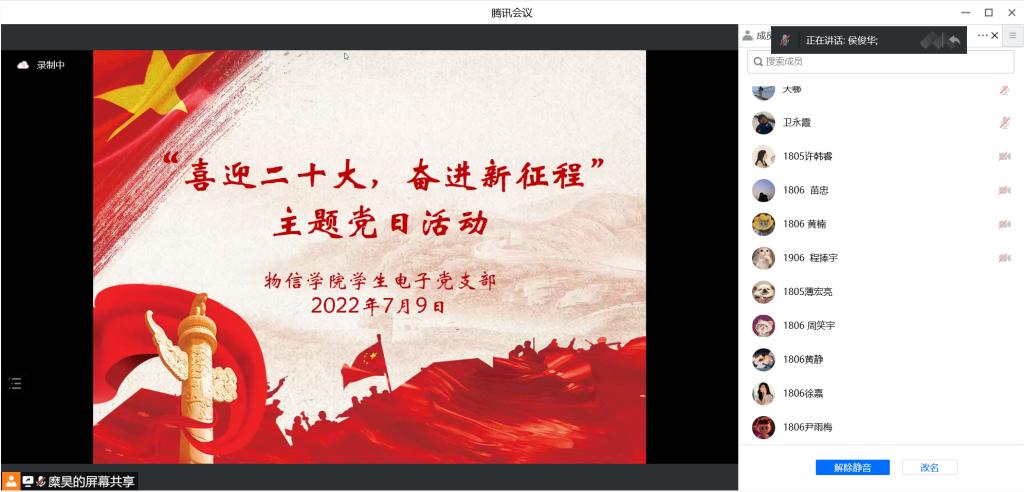 7月9日,云顶Casino 学生电子党支部在腾讯会议开展了“喜迎二十大,奋进新征程”主题党日活动,并邀请云顶Casino 教学副院长侯俊华讲党课,支部全体党员参加了活动。活动由支部党员糜昊主持。
