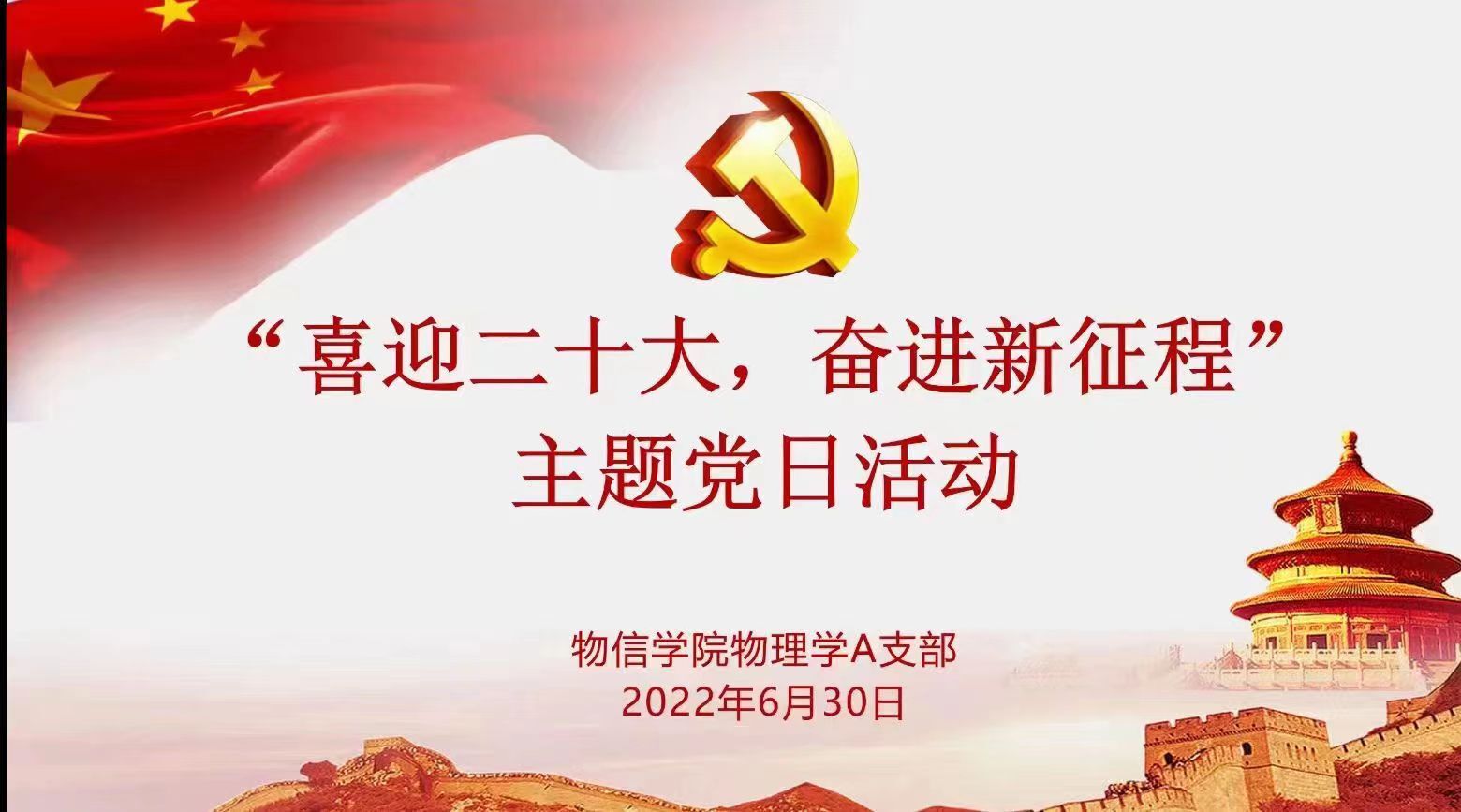 6月30日下午,云顶Casino 物理学A支部在线上开展“喜迎二十大,奋进新征程”主题党日活动。支部全体党员参加了活动,活动由支部书记李俊生主持。