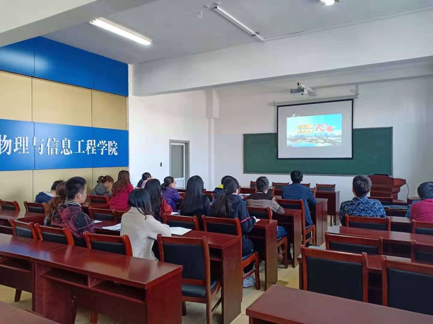 会上,物理学B支部书记程留永首先传达了《中共山西师范大学委员会关于认真学习贯彻<中共中央关于加强党的政治建设的意见>等八部党内法规制度的通知(晋师党字[2019]22号)》的文件精神。要求每位党员要按照学校的部署安排,认真学习这八部党内法规制度。随后,是集体学习专题片,与会党员共同观看了《“改革创新、奋发有为”大讨论特别节目:山西改革开放再出发》和《全省“改革创新、奋发有为”大讨论报告会》视频。