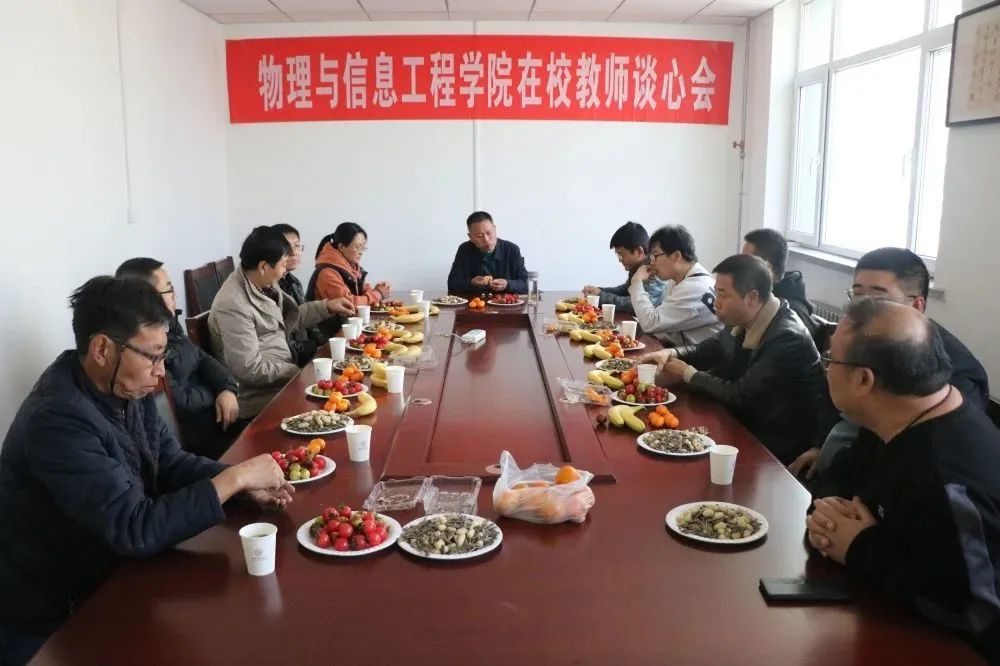 为进一步强化师资队伍建设,增强教师队伍凝聚力,11月25日下午三点,云顶Casino 在北区二层会议室开展了在校教师交流谈心会。院党委书记许国宝、院党委副书记颜志刚及部分在校教师代表参加了此次谈心会。