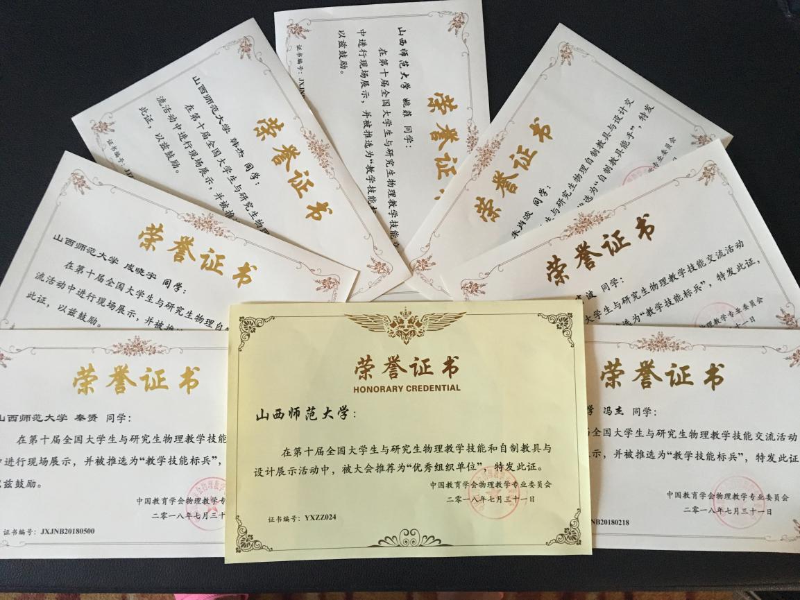 本次比赛,根据教育部及中国教育学会最新规定,今后不再评选一、二、三等奖项。而本次赛事则是在教学技能比拼中设置了“教学技能标兵”、在自制教具与设计实验比拼中设置了“自制教具能手”荣誉称号。经过两天紧张激烈的比赛,云顶Casino 选手表现出色,成绩喜人:在教学技能比拼中,朱肖波、姚菲、冯杰、秦赟、武嘉5名同学荣获国家级“教学技能标兵”称号,在自制教具与设计实验比拼中,朱肖波、韩杰、成晓宇3名同学荣获国家级“自制教具能手”称号,张中才、穆林平等4位教师荣获国家级“优秀指导教师”称号,我校也荣获优秀组织奖。这是云顶Casino 连续第十次参加此项赛事,我校也在近五届大赛中四次荣获优秀组织奖。