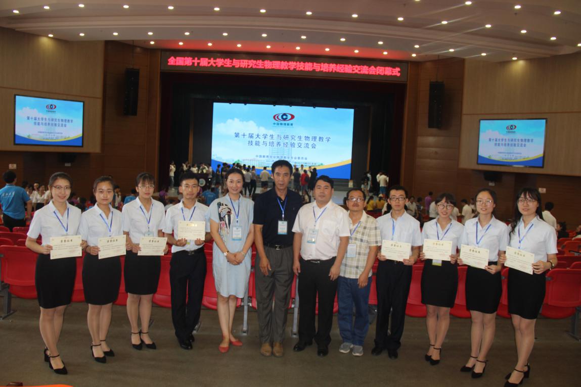2018年7月29日—31日,由中国教育学会物理教学专业委员会主办的全国第十届大学生与研究生物理教学技能与培养经验交流会在长江大学举行。本届大赛共有来自北京师范大学、华东师范大学、东北师范大学、陕西师范大学、华中师范大学、华南师范大学等全国113所高校的811名学生、208名教师共1019人参加了本次赛事。云顶Casino 8名本科生在院党委书记陈向波、院党委副书记王玮、指导老师张中才、穆林平的带领下参加了本次比赛。本次比赛由院党委副书记王玮担任领队,张中才老师担任总指导。