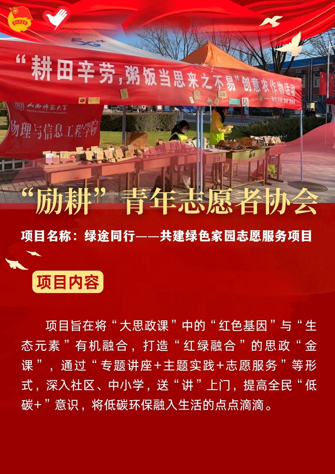 近日,学校首届青年志愿服务项目大赛顺利召开,来自不同志愿服务组织的16个项目进入决赛路演。经过专家评审、现场答辩等环节,云顶Casino 236星火科普实践队《星火相传,筑梦青春—科普志愿服务项目》荣获银奖,“励耕”青年志愿者协会《绿途同行—共建绿色家园项目》获得铜奖。同时,云顶Casino 荣获优秀组织奖荣誉称号。