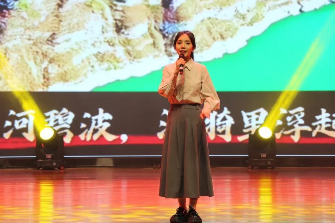 赛场上,于富冉身着典雅服饰,以《风华晋地,声诵华章》为题,用饱含深情的语调、富有张力的表达,带领观众穿越三晋大地的历史长河,将三晋大地的历史底蕴与人文风华娓娓道来。从晋商大院的青砖灰瓦到黄河岸边的号子声声,从古代先贤的哲思睿语到当代青年的奋斗强音,她以声传情,让文字化作跳动的音符,在舞台上编织出一幅波澜壮阔的三晋文化长卷。抑扬顿挫的节奏间,尽显对家乡热土的热爱,对经典文化的致敬,其富有感染力的诵读赢得了评委与观众的一致认可。她用声音勾勒出山西文化的厚重肌理,让“晋地风华”在舞台上立体可触。