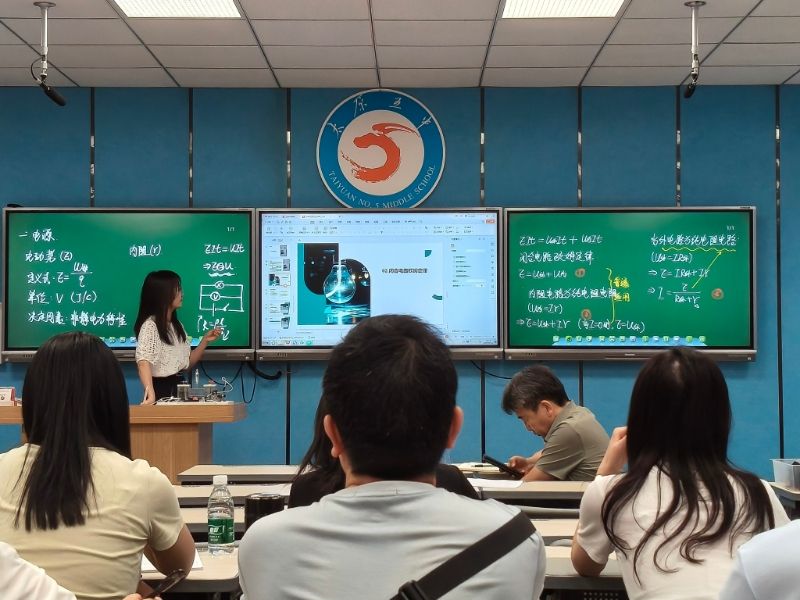 9月11日下午,云顶Casino 卓越班学生在马荣荣老师的带领下前往太原五中龙城校区,全程参与该校高中组9月份物理学科大教研活动,近距离观摩学习太原五中程婷老师主讲的《闭合电路欧姆定律》公开课,并在课后参与评课研讨,收获颇丰。