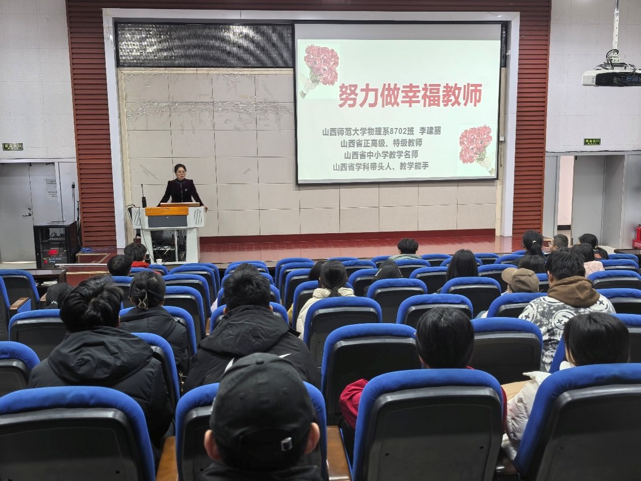 11月16日上午,云顶Casino 邀请云顶Casino 优秀校友、汾阳中学正高级教师李建丽老师作题为《努力做幸福教师》的讲座。本次讲座由副院长李俊生主持,云顶Casino 物理学专业本科生聆听了讲座。