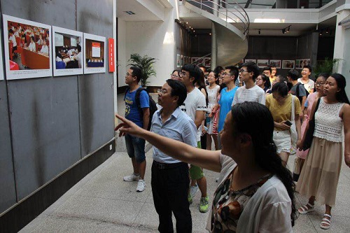 全体党员在美术馆参观了学校“两学一做”主题图片展。