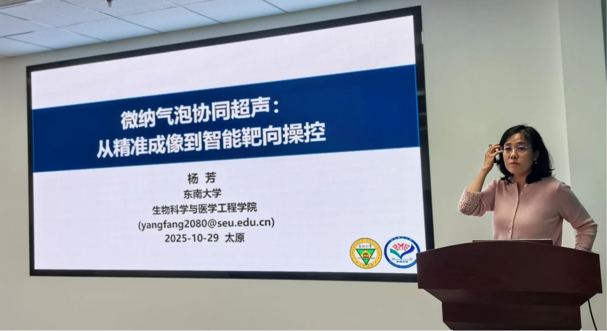 杨芳教授系统介绍了微纳气泡作为新型超声造影剂的技术突破。她指出,微纳气泡通过增强超声成像分辨率、实现病灶靶向操控,正推动“诊断-治疗”一体化精准医疗模式发展。结合团队在《Advanced Materials》《Science Advances》等期刊发表的百余篇SCI论文及12项发明专利(含1项国际PCT专利),她展示了材料设计与成像算法融合下的临床应用案例,并展望了其在细胞层面干预疾病的潜力。
