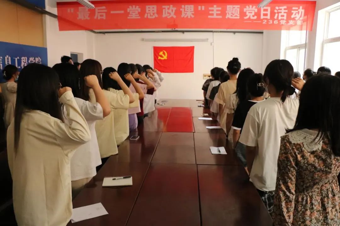 最后,支部全体党员在党旗下重温了入党誓词,并在条幅上署名合影留念,纪念这美好时刻。(文/1803班 王雁敏 摄/宁紫轩 李金阳 张彦迪 王晓节)