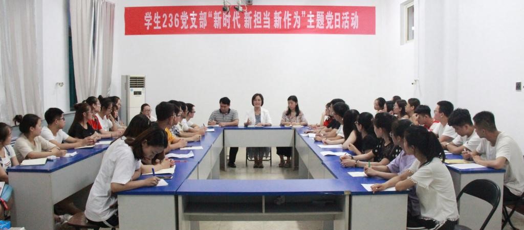 学生236党支部在四号楼二层会议室举办了“新时代 新担当 新作为”主题党日活动。校党委常委、副校长许小红,院党委书记陈向波出席活动,学生236党支部全体党员参加了活动。活动由支部书记岳文慧主持。