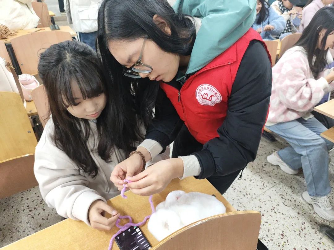 活动报名伊始,就受到了全校同学的广泛关注。本次活动采用线上线下两种方式,参与活动的同学可以选择自己感兴趣的方式奉献爱心。报名结束后,社团工作人员将参与人员进行分组,让同学们以组为单位共同完成围巾的制作。在学习过程中,同学们认真耐心、互帮互助、持之以恒,用一针一线勾勒出通往偏远地区儿童心灵的桥梁。围巾将会于两周后收回,经过打包整合后将爱心传递出去,温暖偏远地区孩子们的心灵。