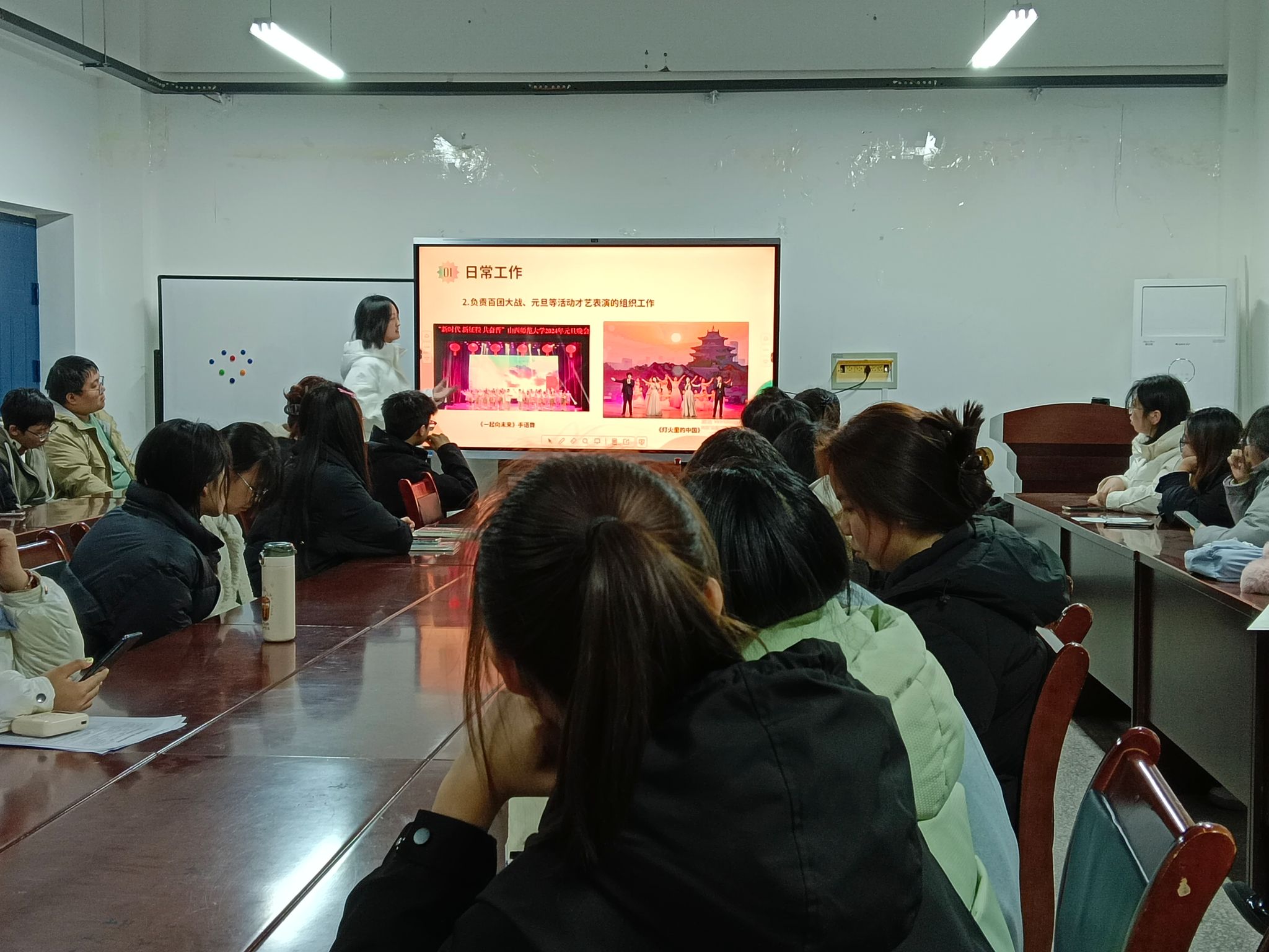 会上,办公室、财务部、纪检部、文艺部、外联部、实践部、宣讲队、宣传部、人才管理库九个部门依次从日常工作与部门建设、收获成长、问题与不足、创新与规划等方面进行了汇报。汇报人从日常工作中的点滴展开,总结收获与成长、规划未来一学期的工作开展,创新活动形式,增强与社会的联系依旧是大家共同努力的方向!