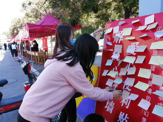 “解忧心愿墙”前,同学们纷纷写下自己近期的小目标、无处倾诉的烦心事和对未来的期许,小小的心愿墙上承载了同学们满满的真情。“猜谜”和“正话反说”小游戏现场热闹非凡,大家依次抽取题目,认真作答,复杂的“猜谜”题目令大家绞尽脑汁,有趣的“正话反说”逗得大家喜笑颜开。“许愿箱”和“祝福箱”中则放入了大家一个个小小的心愿和一份份温暖的祝福,工作人员从所有心愿中随机抽取,帮助幸运同学实现纸条上的愿望,为同学们送去了一份惊喜与感动。