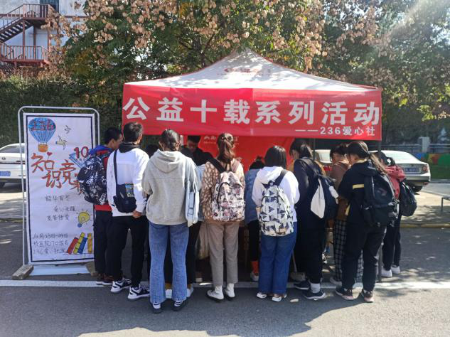 为庆祝236爱心社成立十周年,促进同学们积极主动了解236爱心社十年爱心路的发展历程,10月23日-24日,236爱心社开展了以“竞答题、十年庆、传爱心”为主题的知识竞赛活动。