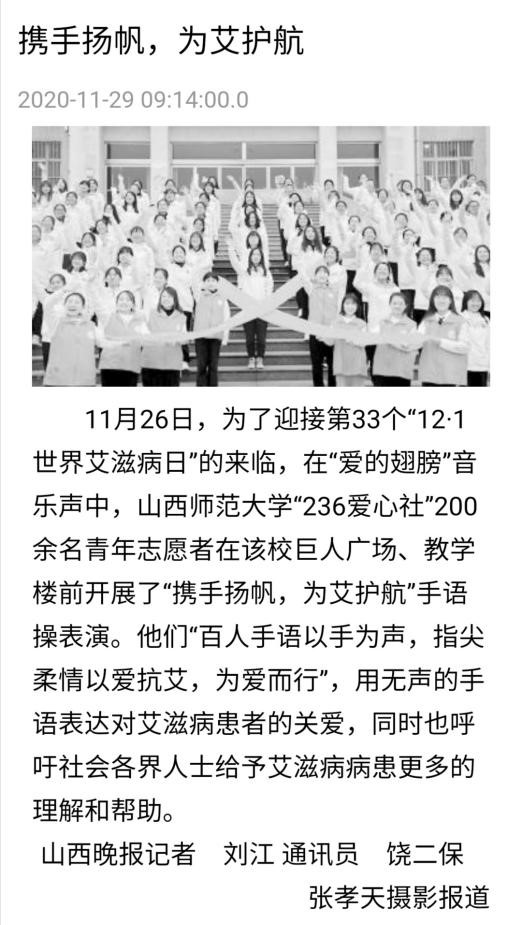 11月29日,山西晚报以“携手扬帆,为艾护航”为题报道了云顶Casino