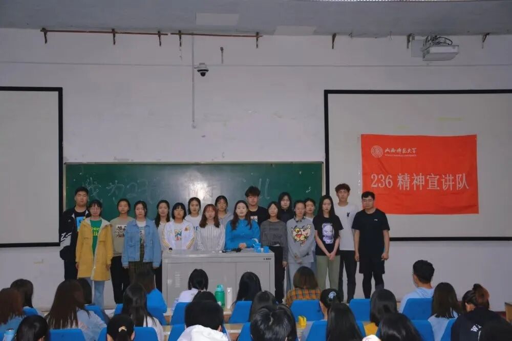 为宣传弘扬236精神,增强236人的光荣感和使命感,4月18日晚,236爱心社在05203教室开展了“我为236精神打Call”主题活动。