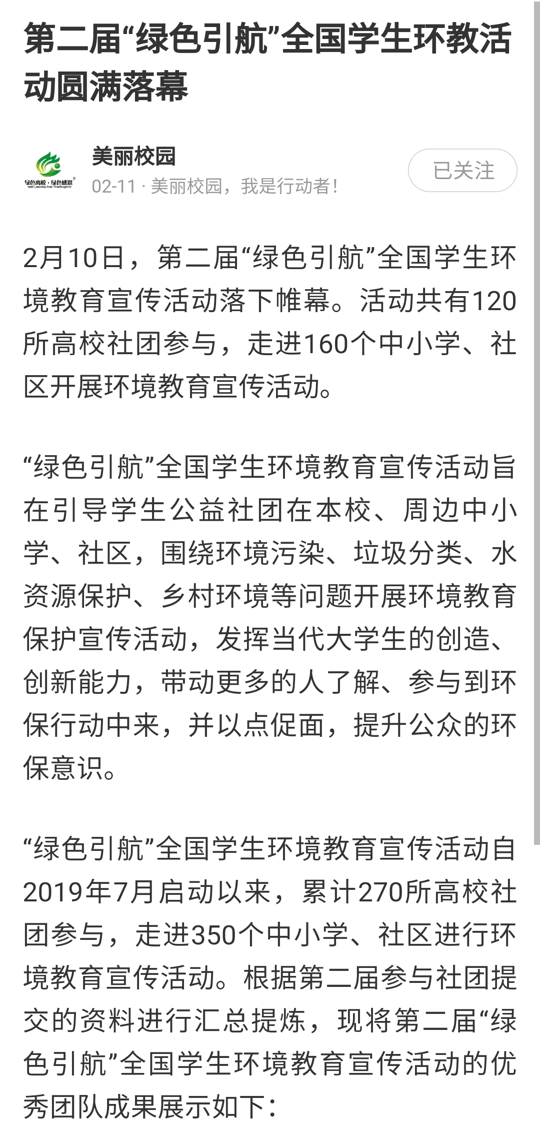 第二届“绿色领航”全国学生环教活动圆满落幕