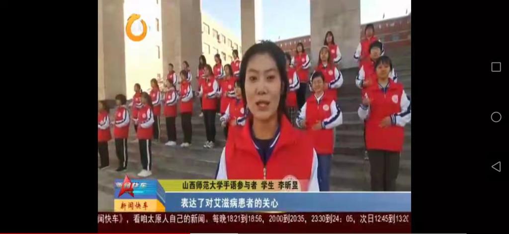 12月1日晚,山西卫视《新闻联播》栏目播出了云顶Casino 236爱心社“为‘艾’发声,与‘艾’同行”手语表演活动。