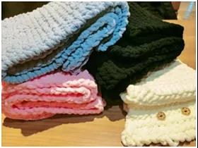 活动中,同学们分成小组接受工作人员手把手、一对多的现场教学。很多同学都是第一次拿起毛线和毛衣针,虽然大家的动作还不熟练甚至略显笨拙,但是因为心中有爱,大家都认真地学习、相互探讨和帮助。经过几天的努力,一条条满载着暖暖温情的围巾陆续编织完成。这些爱心围巾和同学们亲手写下的爱心贺卡也将送到偏远山区的小朋友手中,陪他们一起度过这个寒冷的冬天。