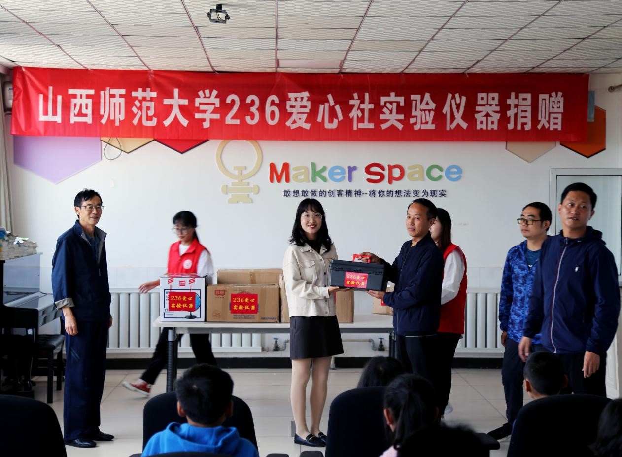 团委负责人马丽娜带领236爱心社4位社员,前往236爱心社校外实践基地——临汾市红丝带学校开展“情系红丝带”爱心实验仪器捐赠活动。