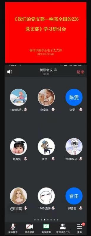 学生电子党支部于2021年6月15日下午在线上召开了《我们的党支部——响亮全国的236党支部》专题片学习研讨会。会议由支部党员程雅茹主持。