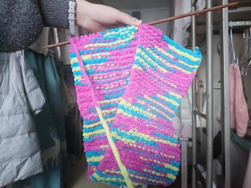 这次我有幸参加了“为爱穿针,以织传情”的活动,对于这次的经历,我感触颇深。我在之前从未接触过织围巾,而且听说是给山区孩子织围巾,所以便想要去尝试尝试。一共参加了两次培训,学姐们都非常的热情,手把手教我们如何去起针,如何织第二排,如何收尾,即使我做错了,学姐也会温柔耐心的教我。在不断的练习后,我终于学会了,很开心。然后便与我的另外两个舍友一起织围巾给山区的孩子。当一条蓝色的围巾出现在我面前时,是满满的成就感。