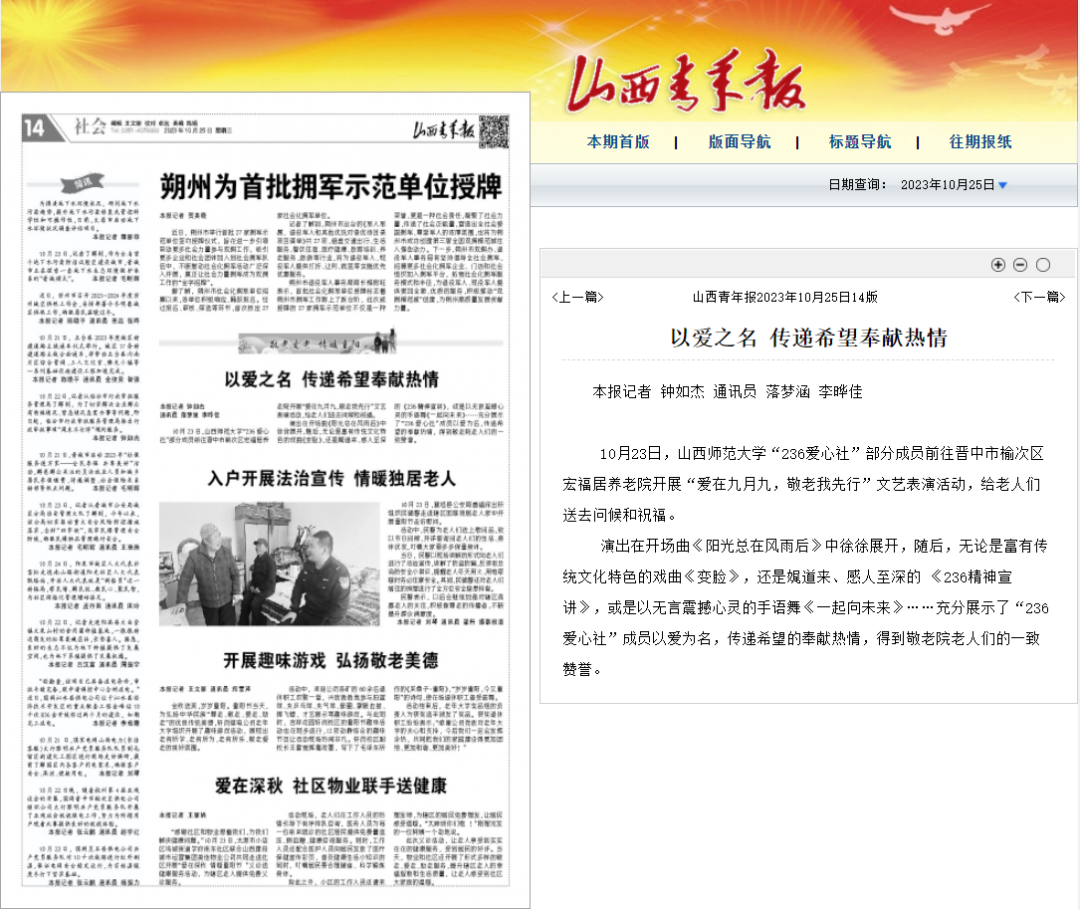 10月25日,《山西青年报》以“以爱之名 传递希望奉献热情”为题,报道了云顶Casino