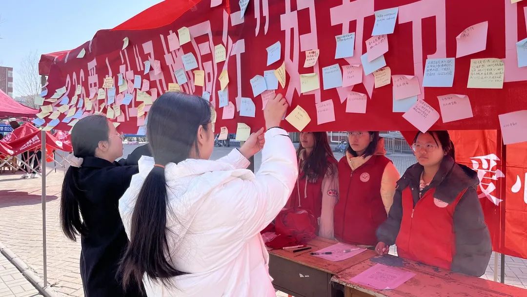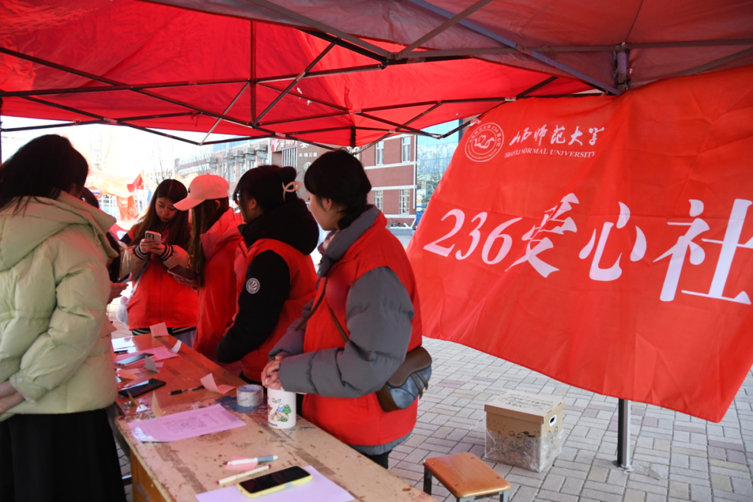 236爱心社在南区六号教学楼前启动了一项专为女性贴心设计的活动——"予她同行"妇女节卫生巾互助活动。