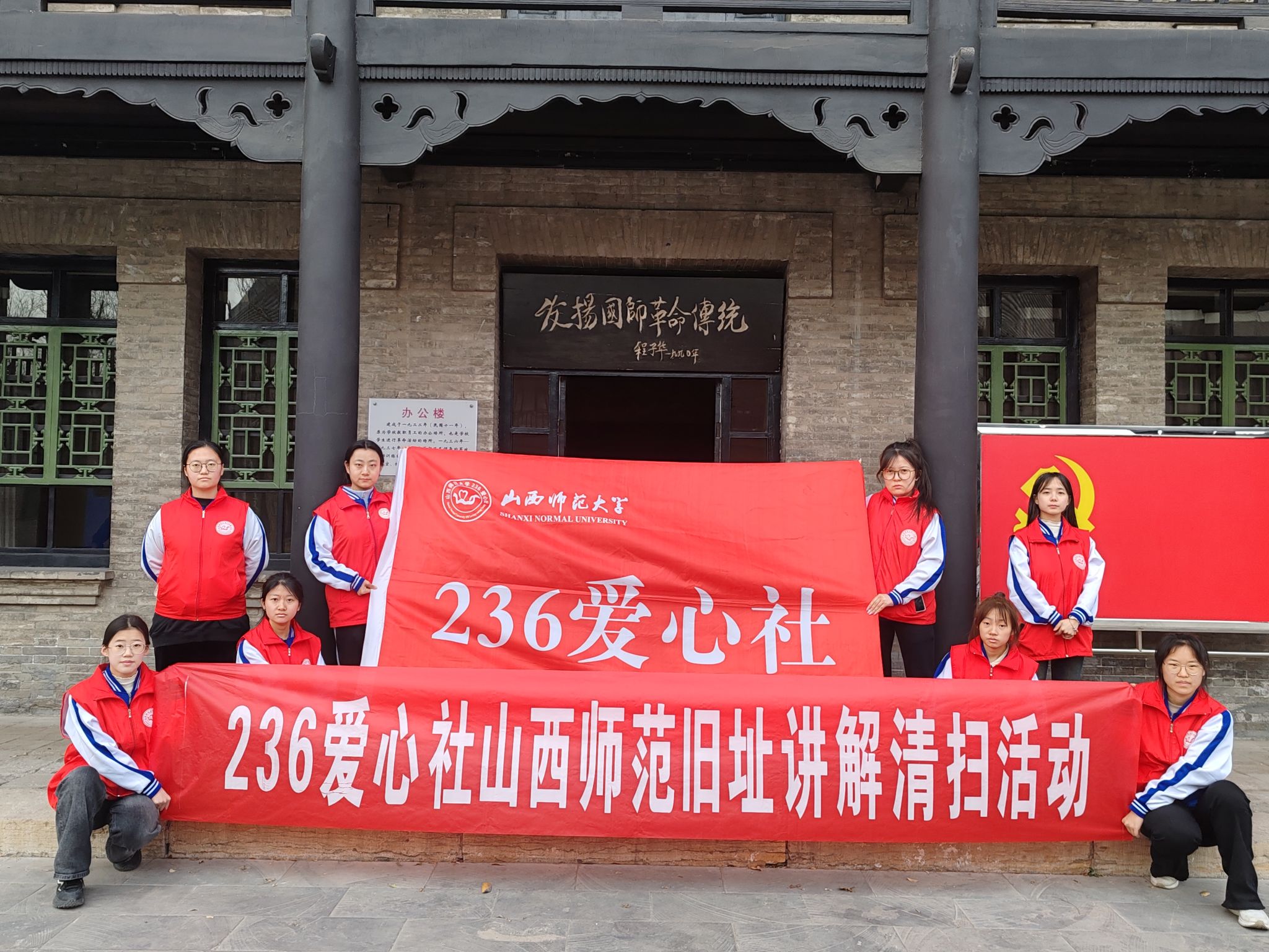 236爱心社在3月15日至17日组织志愿者前往山西国民师范旧址纪念馆,进行以“红色传承,‘益’起行动”为主题的志愿讲解及清扫活动。