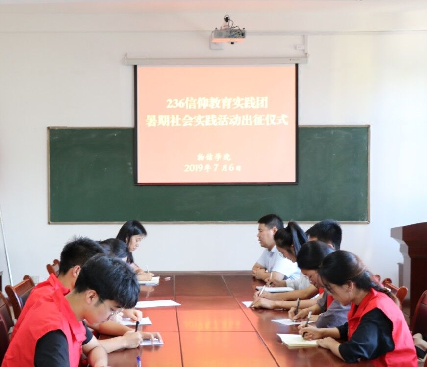 在四号楼二层多功能会议室举行236信仰教育实践团暑期社会实践活动出征仪式。出征仪式由院党委书记陈向波出席,专职辅导员马丽娜和236信仰教育实践团全体成员参加。学生236党支部书记岳文慧主持出征仪式。