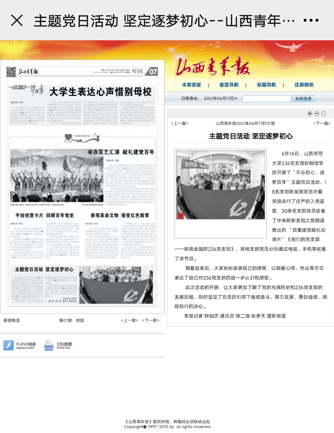 6月17日,《山西青年报》以“主题党日活动 坚定逐梦初心”为题报道了云顶Casino